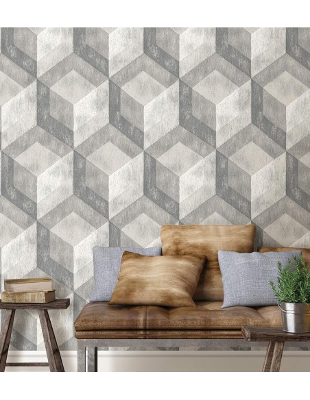 Papel de Parede Autocolante Geométrico 3D Moderno