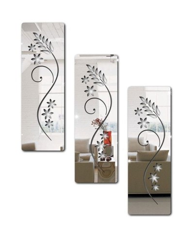 01 x Kit 3 Paineis com Flores e Ramos Vazado em Espelho