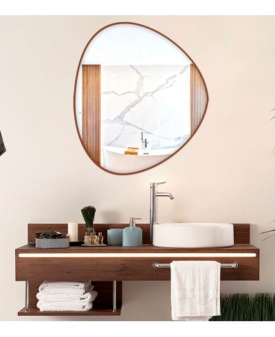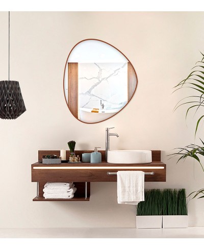Espelho orgânico moderno com moldura em couro sintético que combina com diversos ambientes da sua casa, aproveite nossas ofertas e renove!