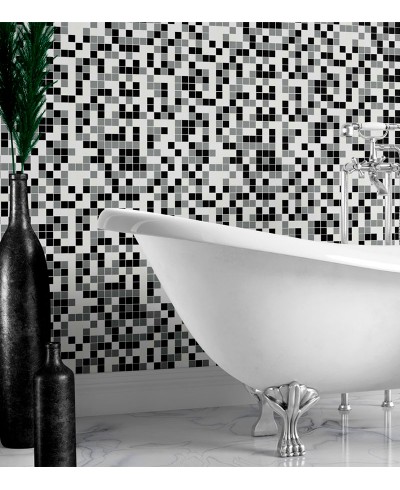 Adesivo Azulejo Pastilhas Em Tons de Preto, branco e Cinza