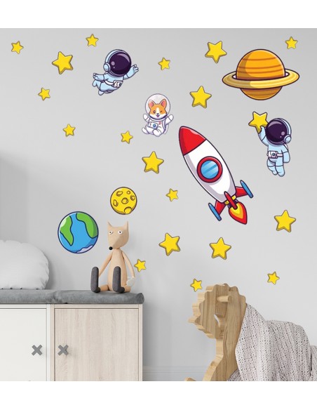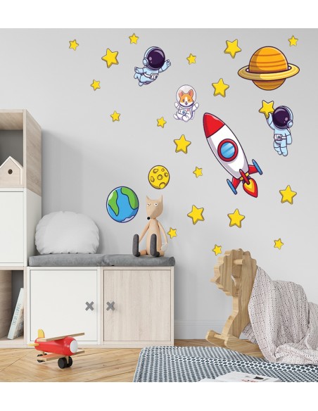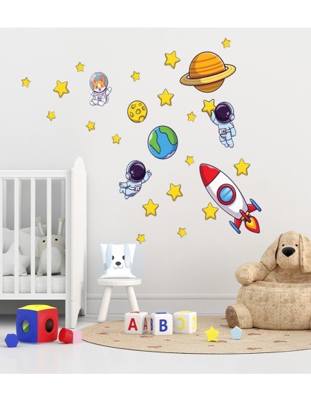 Simples e fácil de aplicar nosso adesivo decal, decore sua parede com esse lindo modelo infantil astronauta!