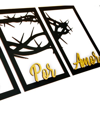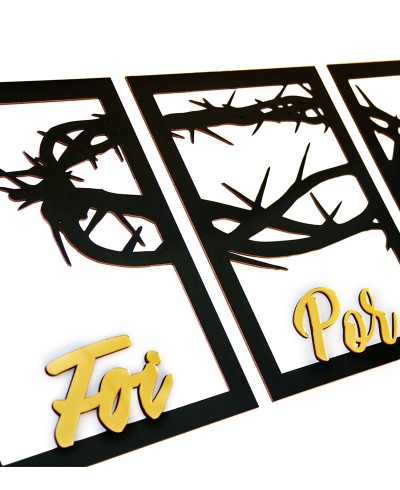 Nossos quadros são cortados à laser, sendo o material em MDF com espessura de 3mm.