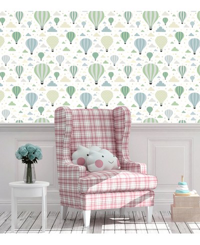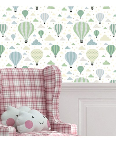 Papel de Parede infantil balões com nuvens delicadas desenvolvido especialmente para você, aproveite!