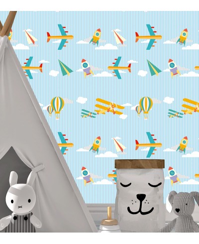 Papel de Parede infantil com aviões e balões, perfeito para transformar e deixar o quartinho como sempre sonhou, aproveite!