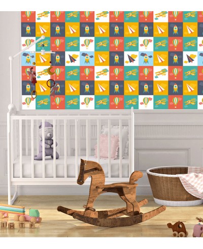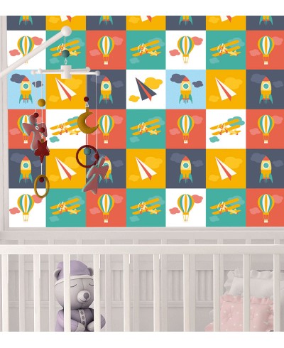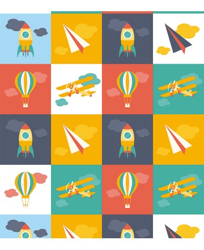 Papel de Parede colorido com aviões, foguetes e balões, renove o cantinho que deseja com esse lindo modelo, aproveite!