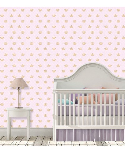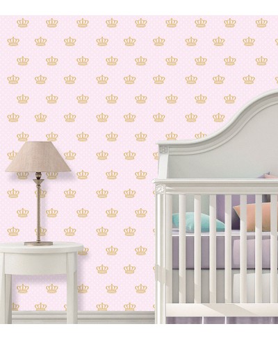 Papel de parede coroa com fundo rosa, fuja do padrão das paredes pintadas, decore você mesmo com esse lindo modelo!