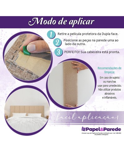 Dica para instalação: Posicione a Cabeceira centralizada na sua parede, entre suas mesas de cabeceira, harmonizando as cores com seu conjunto de enxoval, seu quarto causará admiração e requinte. Recomendamos a limpeza com pano úmido e não aplicar produtos de limpeza para móveis.