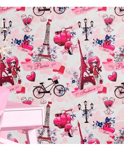 Papel de Parede Paris com fundo rosa e detalhes em Fashion para quem gostar de decorar com estilo e sofisticação, aproveite!!