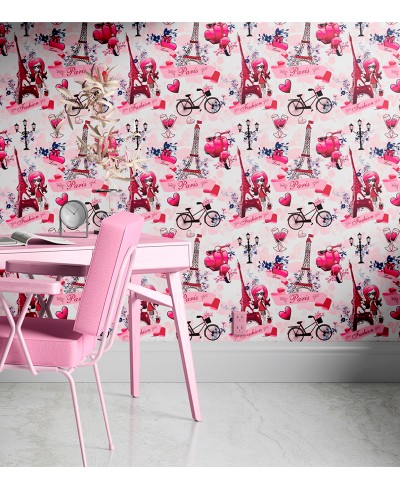 Papel de Parede Paris Fashion Amor Bicicleta Torre Eiffel