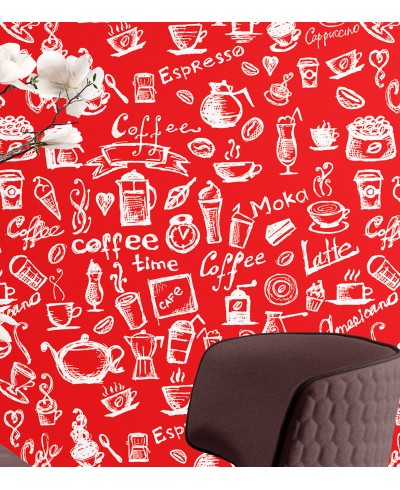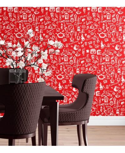 Papel de Parede Cozinha Gourmet Café Vermelho, ideal para cozinha, área de lazer e até banheiros. Feito para quem quer mudar totalmente o seu ambiente deixando ele muito mais bonito e com outro aspecto.
