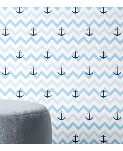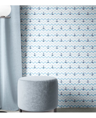 Papel de parede chevron azul claro com ancora, ideal para decorar o quartinho do seu bebê!!