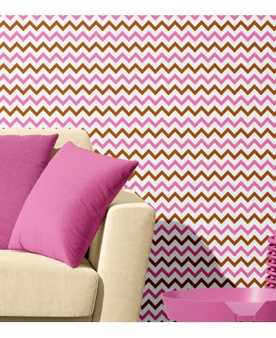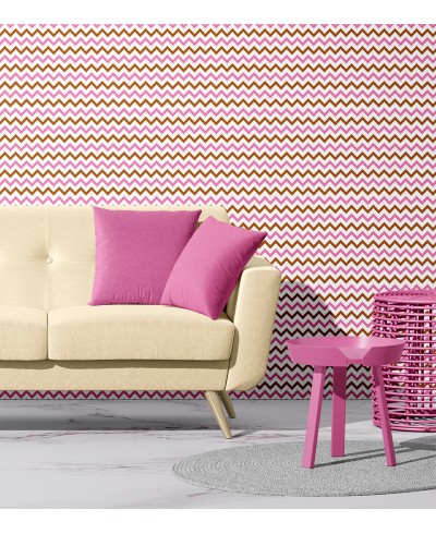 Papel de parede chevron marrom e rosa, modelo em tons forte para quem gosta de transformar o ambiente com elegância.