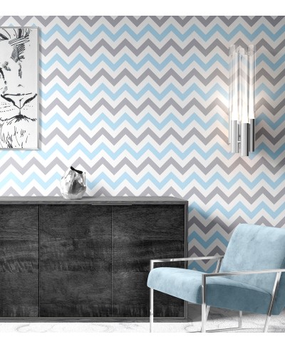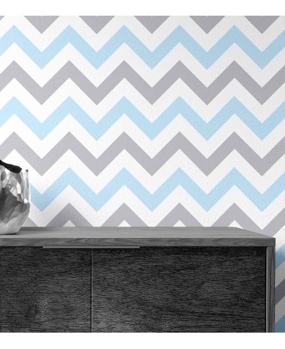 Papel de parede chevron com detalhes azul e cinza perfeito para quem adora decorar com qualidade e sofisticação.