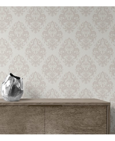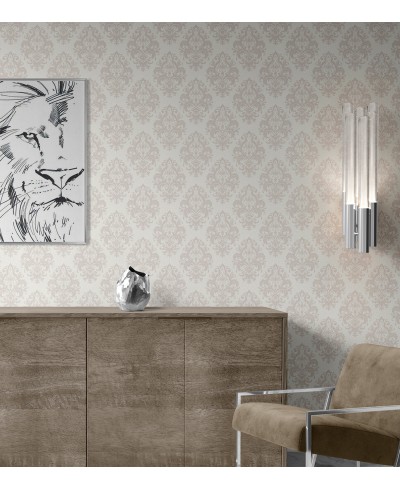 Papel de parede damask branco e bege ideal para quem adora clássicos, aproveite essa exclusividade.