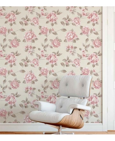 Papel de parede em tons bege, cinza e rosa, vindo da linha clássica Dream este papel de parede possui uma textura única com cores pastéis, pode ser um trunfo para quem procura equilibrar mobilia com a decoração da parede é considerado perfeito para quem procura um papel de parede para sala de estar.