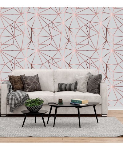 Papel de parede Diamond Jade Cinza e Rose ideal para ambientar seu escritório, sala, e dar um ótimo visual moderno.
