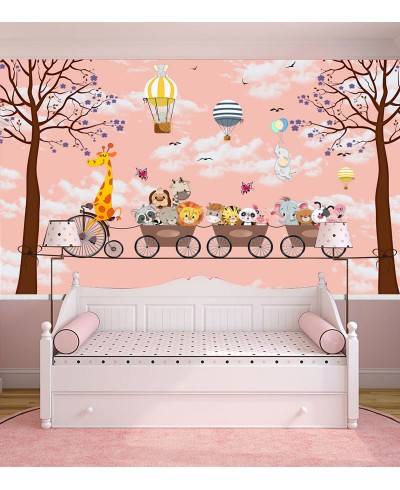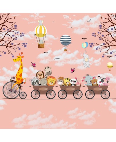 Foto Mural Safari Divertido Girafa e Animaizinhos com fundo rosa que trás aquela leveza da infância, ótima opção para decorar com um toque especial.