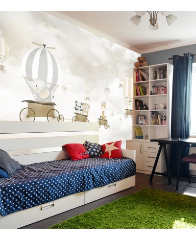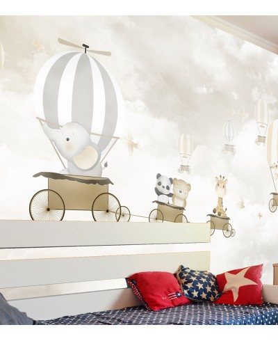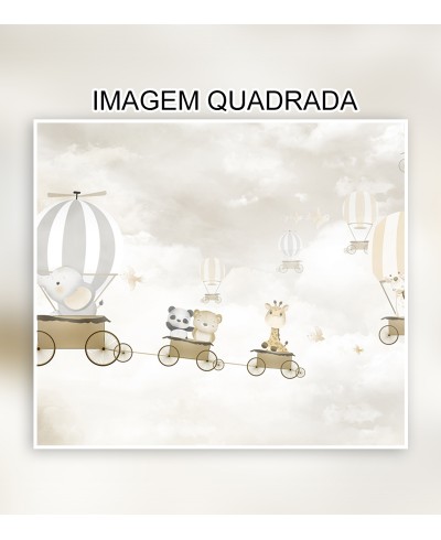 Foto Mural Infantil Safari Animais em Balões desenvolvido com ótimo design em tons neutros. Aproveite!