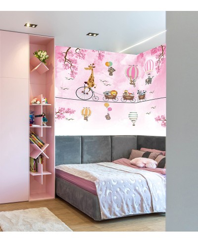 Foto mural safari baby aquarela em tons de rosa, renove o quartinho do seu amor com esse lindo modelo cheio de charme, aproveite!