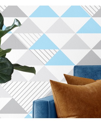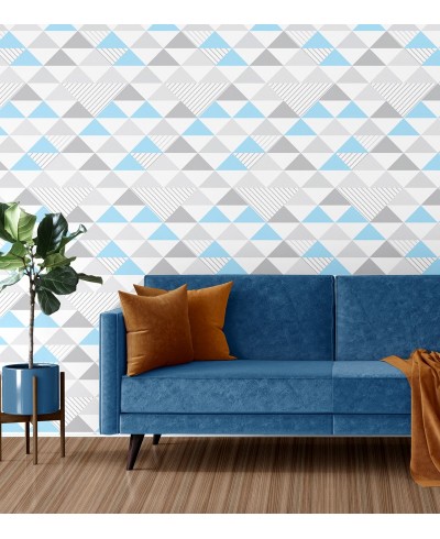 Papel de Parede Geométrico Triângulo em tons de cinza e azul, perfeito para dar um toque especial e mudar completamente o seu ambiente, aproveite!