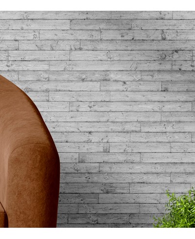 Papel de parede madeira em estilo deck em tons cinza perfeito para decoração de sala, quarto, cozinha e área gourmet, oferta imperdível.