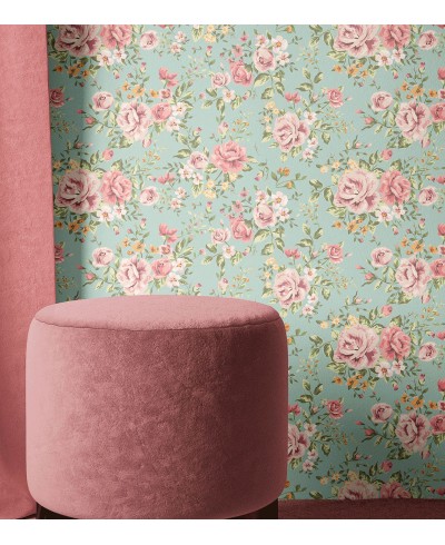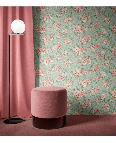 Papel de Parede floral fundo verde com rosas, o método mais rápido e prático para decorar aquele cômodo que ama!