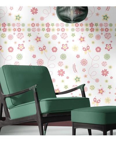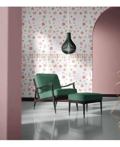 Papel de Parede flores com fundo branco clássico que possibilita ser utilizado nos mais variados ambientes.