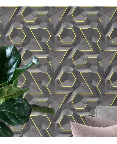 O papel de parede de nossa linha 3D Hexágono caracteriza-se por ter cores amarelas e escuras com efeitos e formas, sendo assim o mesmo é perfeito para decorações interiores como salas e escritórios, assim possibilitando aquela sensação 3D e trazendo um pouquinho de modernidade para seu espaço.