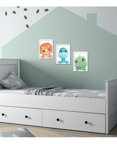 Kit com 3 Quadros Decorativo Dinossauros Baby que combina e completa seu ambiente com fofura e elegância, aproveite!