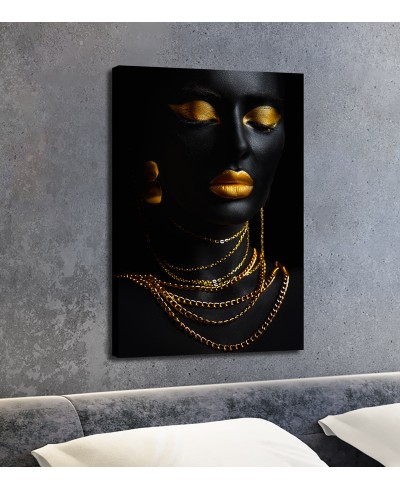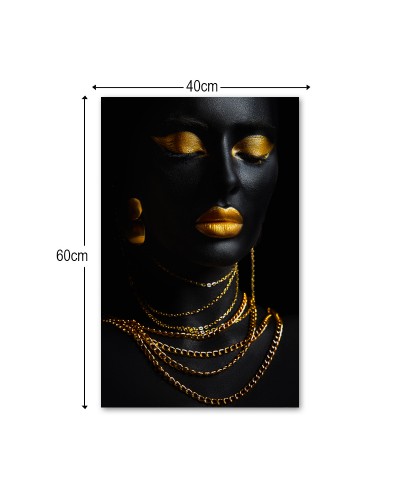 Quadro Decorativo Tela Mulher Negra Luxo com Detalhes Dourado
