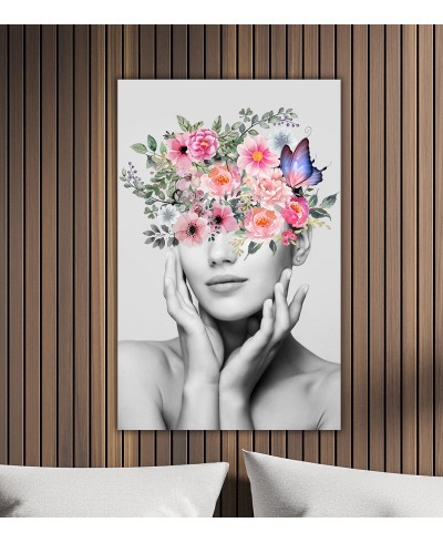 Mulher com flores na cabeça em tela que já virou febre na decoração de interiores, renove o seu ambiente!