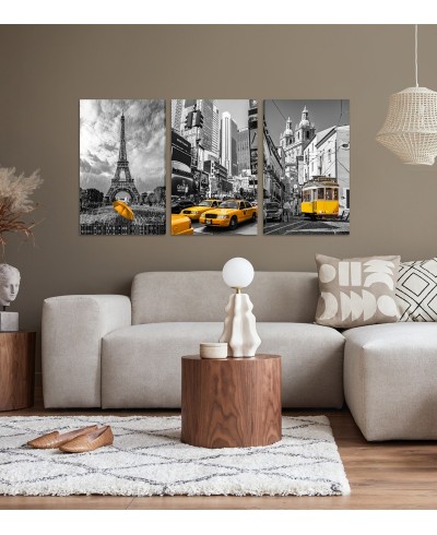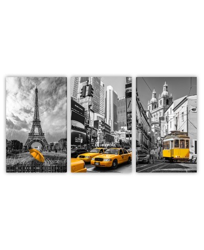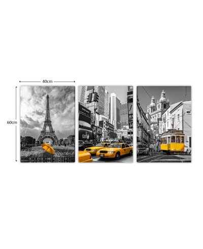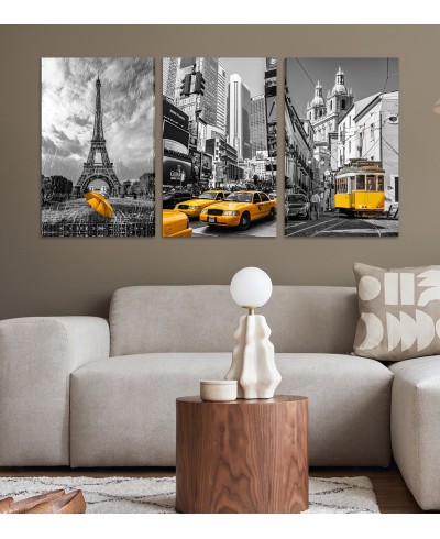 Tela Decorativa Paris, Nova York e o Famoso Táxi Amarelo, perfeito para decorar e trazer leveza ao ambiente, aproveite esse lindo kit com 3 telas incríveis!