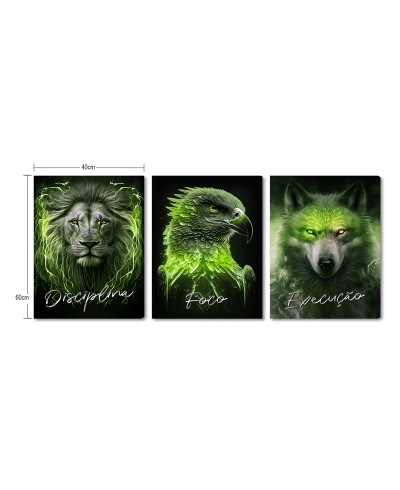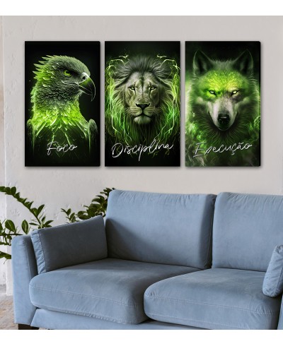 Kit com 3 telas no tema foco, disciplina e execução, adquira esse modelo para constantemente se lembrar da importância de cada uma delas e renovar seu ambiente! Aproveite.