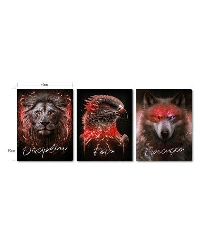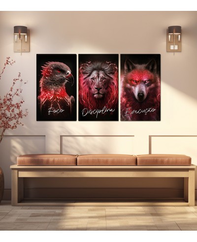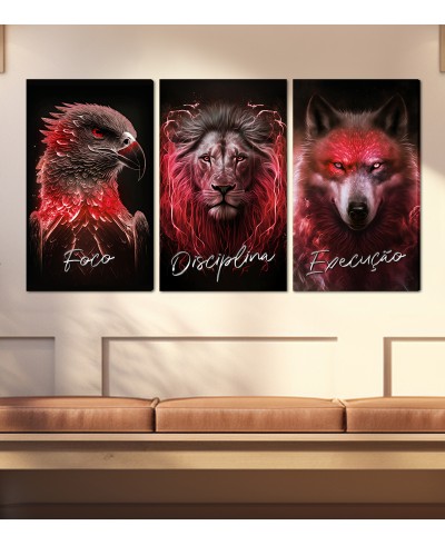 Kit com 3 telas no tema foco, disciplina e execução, adquira esse modelo para constantemente se lembrar da importância de cada uma delas e renovar seu ambiente! Aproveite.