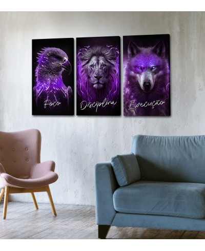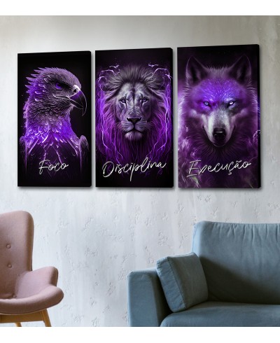 Kit com 3 telas no tema foco, disciplina e execução, adquira esse modelo para constantemente se lembrar da importância de cada uma delas e renovar seu ambiente! Aproveite.