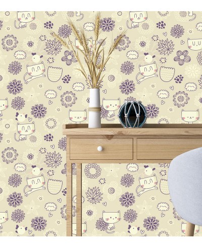 Papel De Parede Adesivo de Gatinhos delicados em um fundo Silver Thyme, delicado e harmônico, ideal para decorar o seu lar com qualidade e elegância.