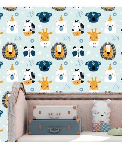 Papel de Parede safari estrelas com cores clean tornando uma ótima opção para decorar, aproveite!