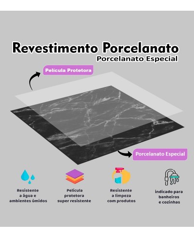 Esse produto cobre imperfeições, pode ser aplicado por cima de outros pisos sem a necessidade de quebra quebra, é muito rápido aplicar nosso porcelanato autocolante, ótimo custo benefício.
