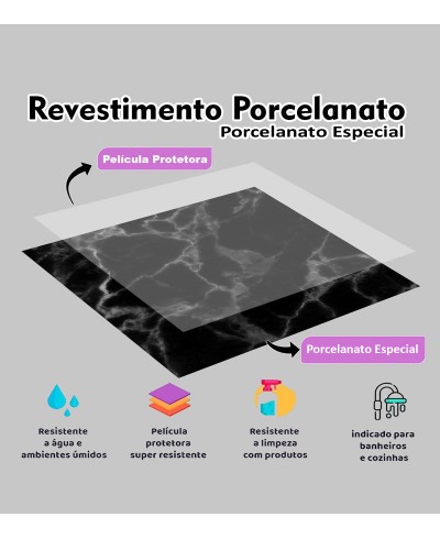 Revestimento em porcelanato autocolante estilo mármore preto moderno com alta qualidade, renove seu ambiente sem fazer sujeira, aproveite!