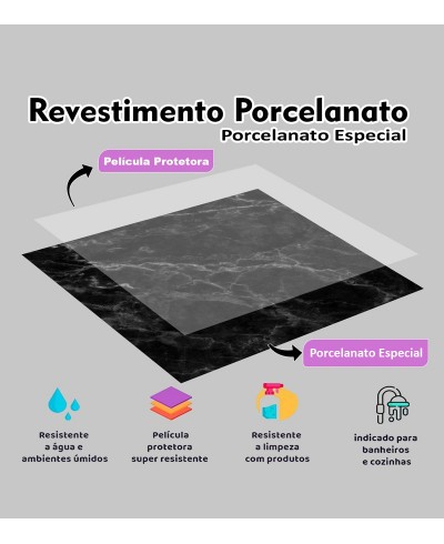 Esse produto cobre imperfeições, pode ser aplicado por cima de outros pisos sem a necessidade de quebra quebra, é muito rápido aplicar nosso porcelanato autocolante, ótimo custo benefício.