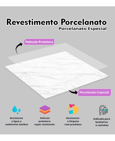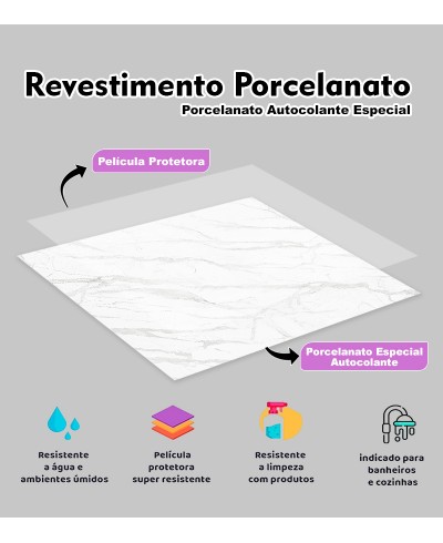 Esse produto cobre imperfeições, pode ser aplicado por cima de outros pisos sem a necessidade de quebra quebra, é muito rápido aplicar nosso porcelanato autocolante, ótimo custo benefício.