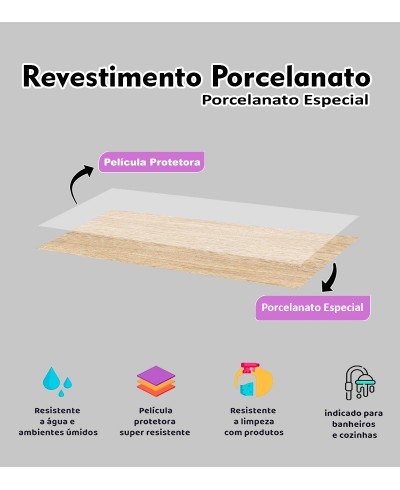 Esse produto cobre imperfeições, pode ser aplicado por cima de outros pisos sem a necessidade de quebra quebra, é muito rápido aplicar nosso porcelanato autocolante, ótimo custo benefício.
