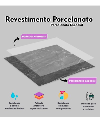 Esse produto cobre imperfeições, pode ser aplicado por cima de outros pisos sem a necessidade de quebra quebra, é muito rápido aplicar nosso porcelanato autocolante, ótimo custo benefício.