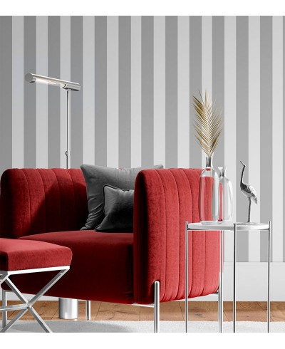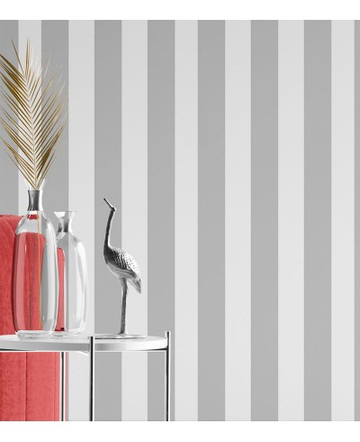 Papel de Parede de listras cinzas e brancas verticais, discreto e elegante, ideal para quaisquer ambientes, uma escolha excepcional para levar ainda mais a elegância e o personalidade ao seu cômodo, com itens de altíssima qualidade.
