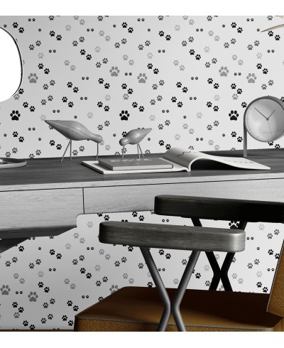 Papel de Parede Temático Patas em fundo branco e Patinhas em Tons Preto e Cinza
