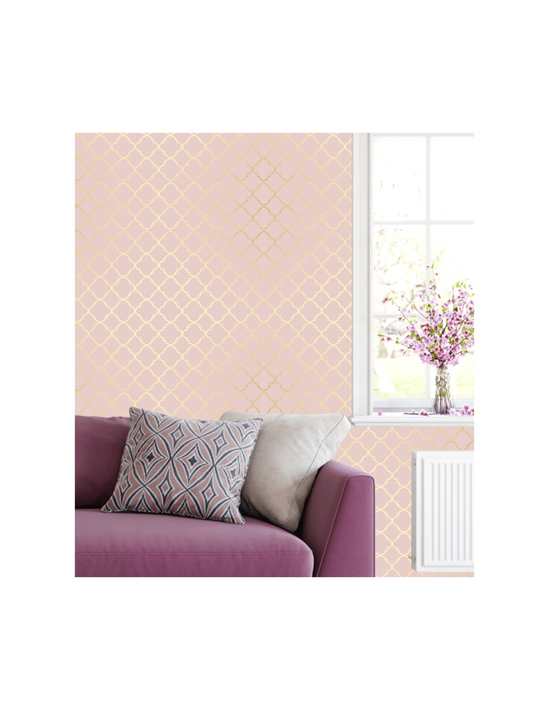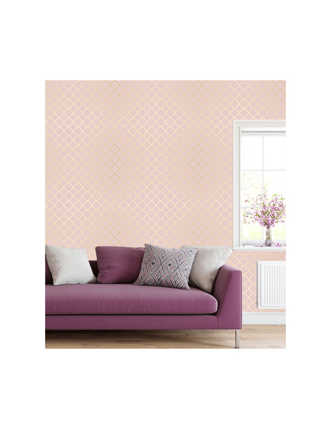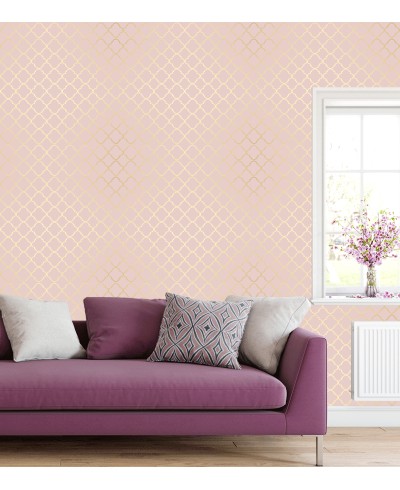 Papel de Parede Rosê Tons Amarelo Arabesco.