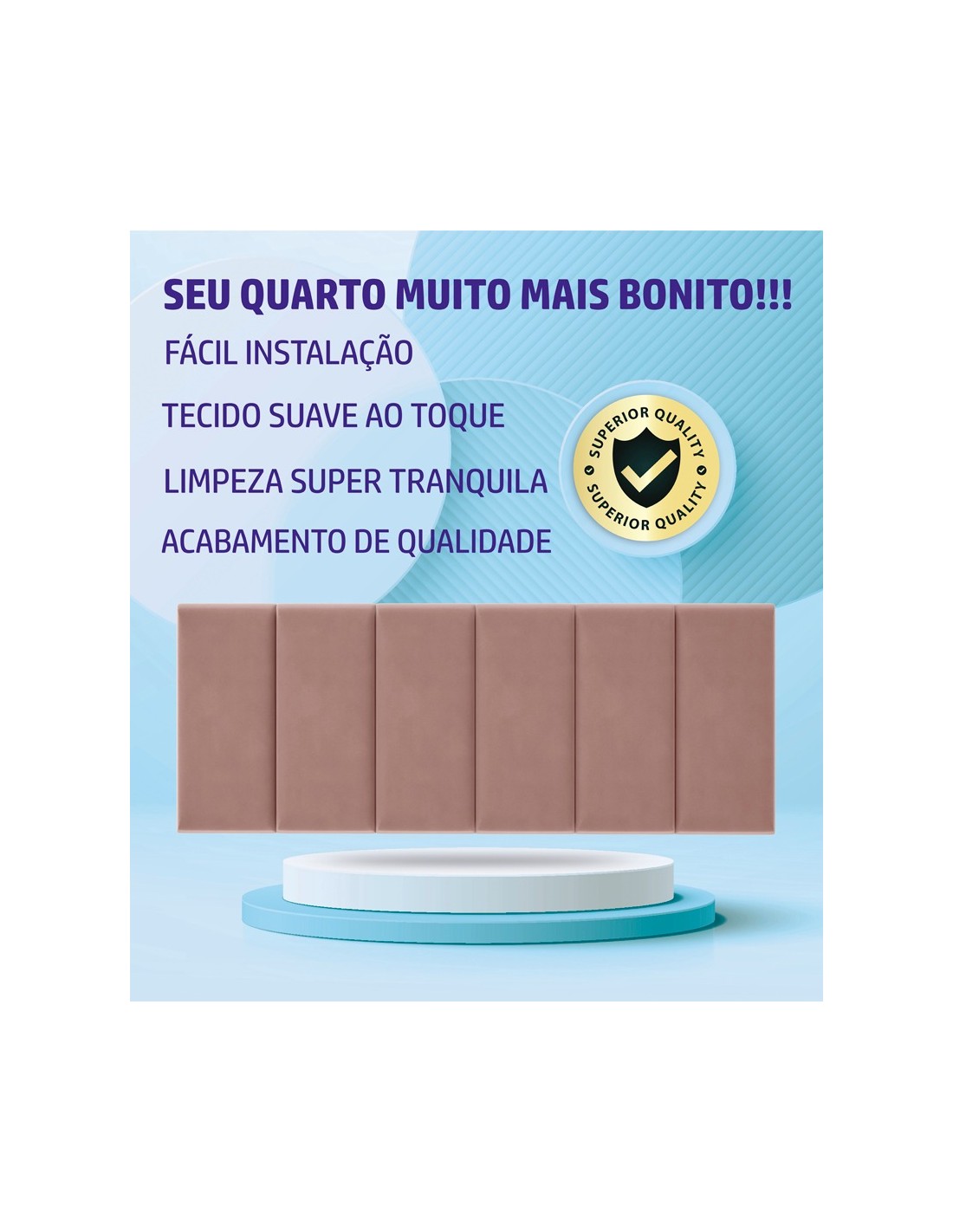 Dica para instalação: Posicione a Cabeceira centralizada na sua parede, entre suas mesas de cabeceira, harmonizando as cores com seu conjunto de enxoval, seu quarto causará admiração e requinte. Recomendamos a limpeza com pano úmido e não aplicar produtos de limpeza para móveis.