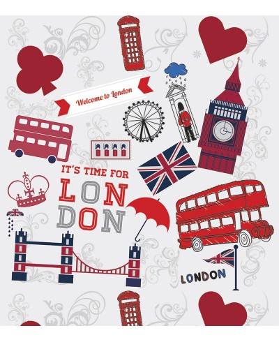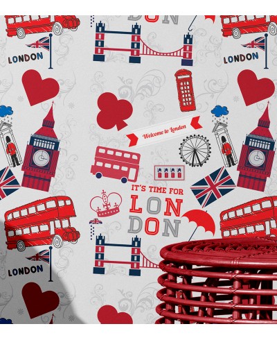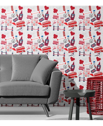 Papel De Parede Londres London Vintage com fundo cinza e detalhes em vermelho com cores vivas para alegrar seu ambiente com muito estilo.