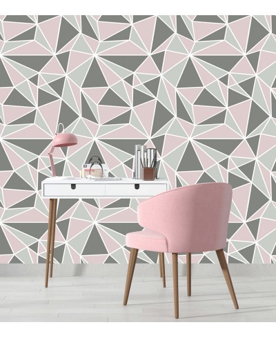 Papel de parede Diamond Triângulos Colors Rose e Cinza, ideal para deixar seu ambiente muito mais sofisticado.