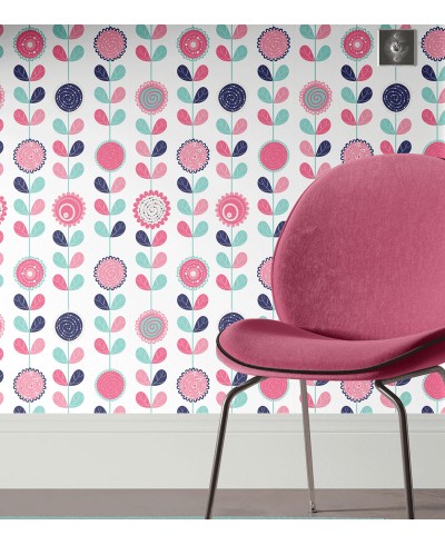 Papel de Parede flores com ramos clássico, decore você mesmo sem fazer sujeira e com muita facilidade!